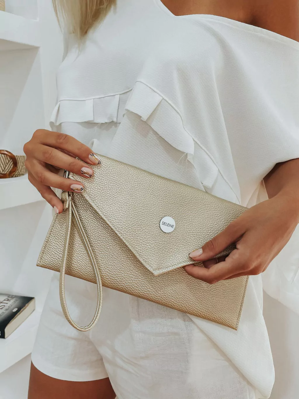 El sobre Claris champagne es el complemento perfecto para tus noches especiales y eventos elegantes. No te puede faltar para llevar lo esencial con estilo: celular, llaves, labial.