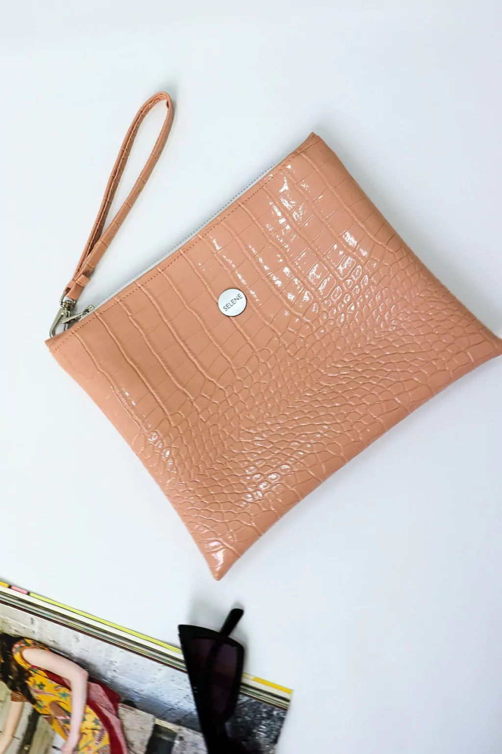 Cierre y herrajes de metal. Manija corta de muñeca.